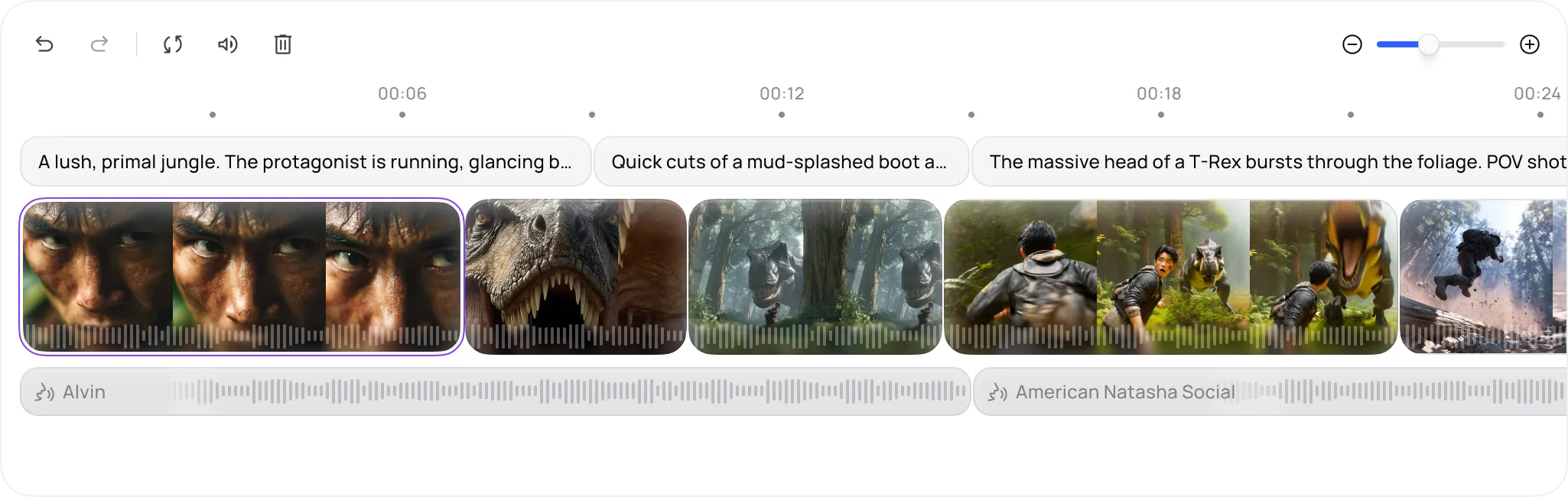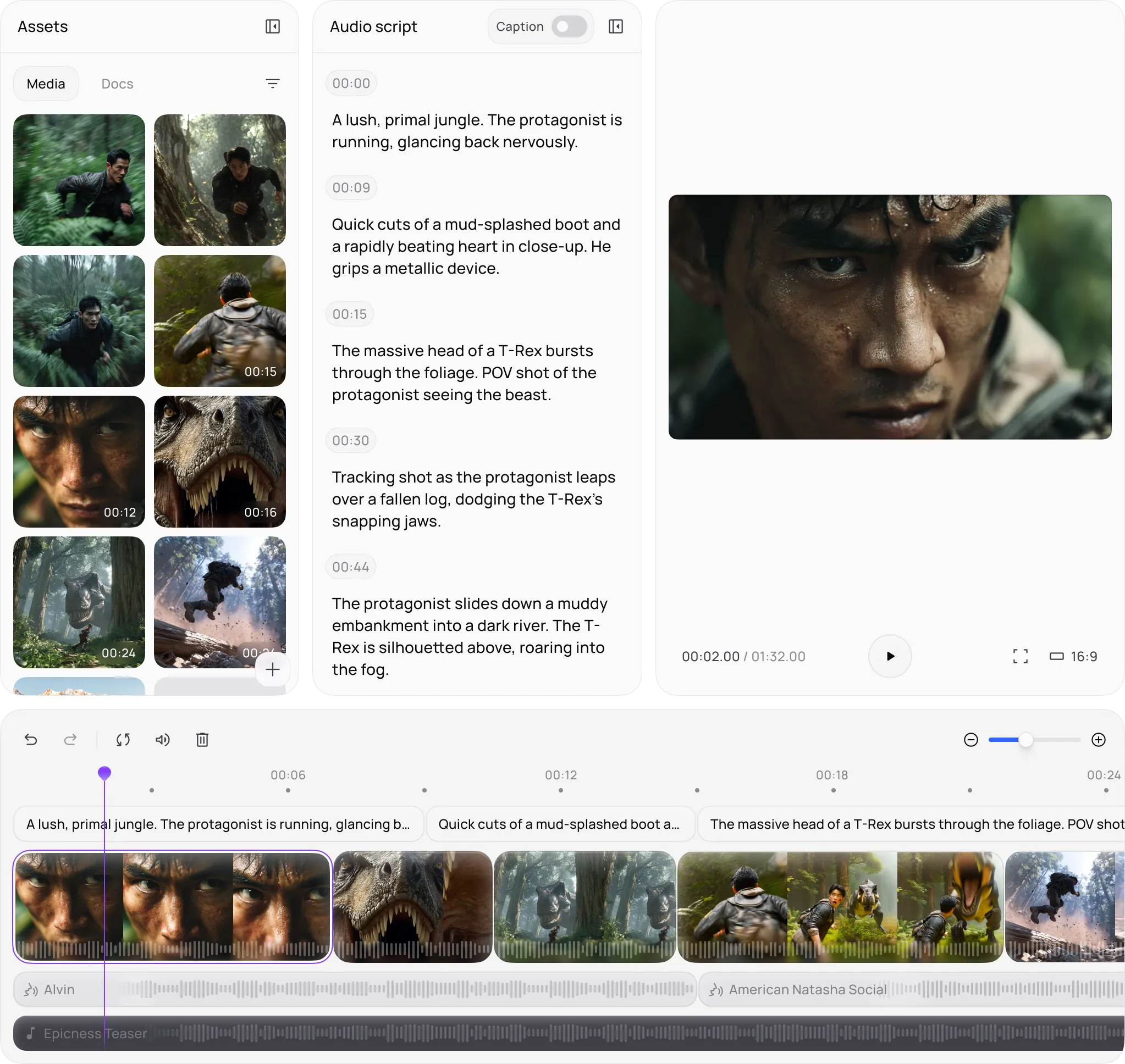 Take full control, simply. Intuitively modify and drag every sound, subtitle, and asset. The track stays perfectly synced with your script, so you never lose your place.