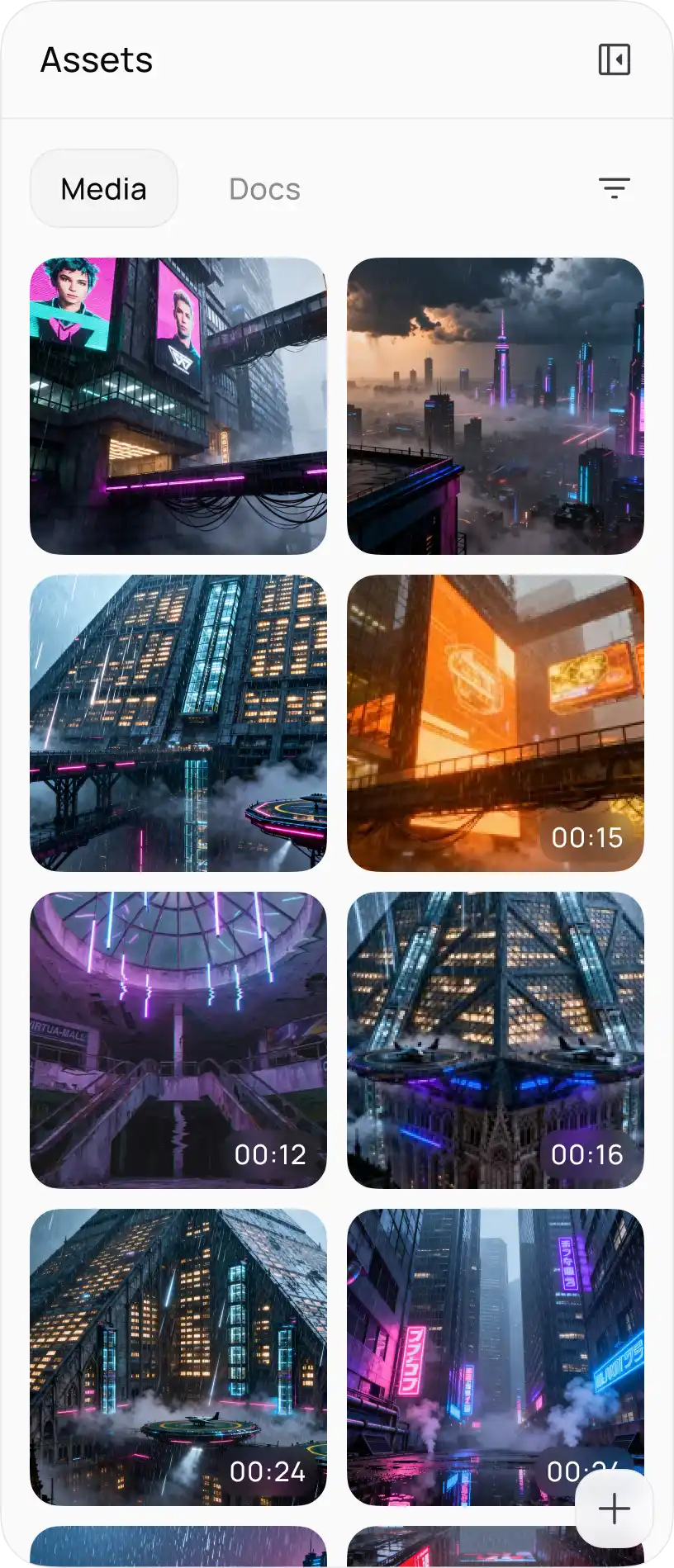 Stop searching for assets. Access millions of stock images, videos, and hundreds of AI voices. Or, freely upload your own files, text, and URLs—all in one place.