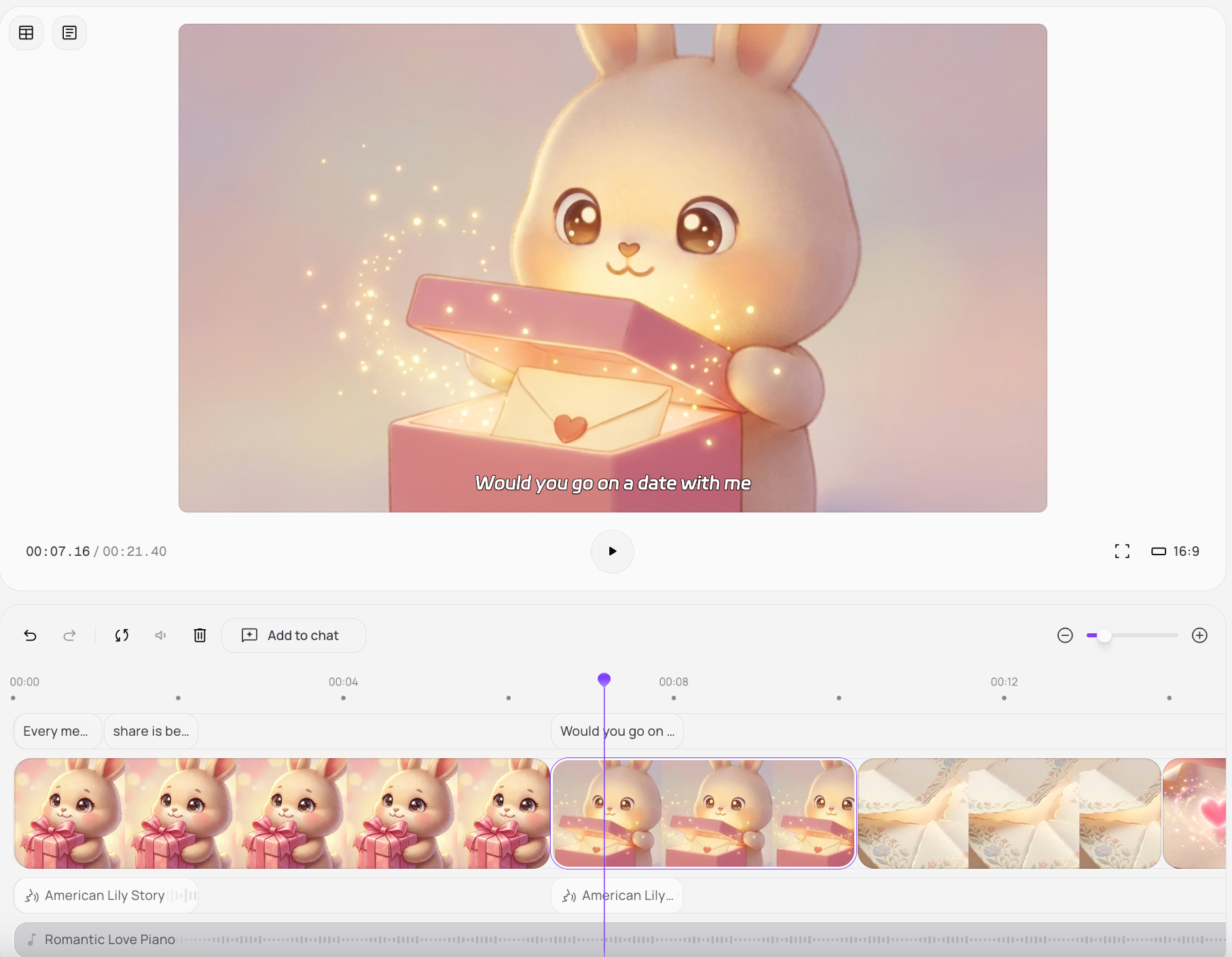 Preview your AI-animated love letter, make any final adjustments, and then generate and share your romantic creation.