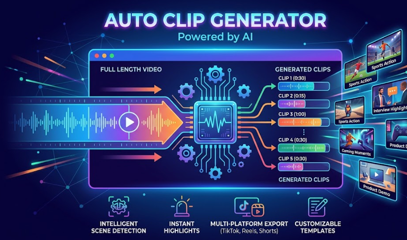 An auto clip generator is an AI-powered tool that extracts the most engaging segments from long videos and turns them into short, shareable clips optimized for social media platforms.