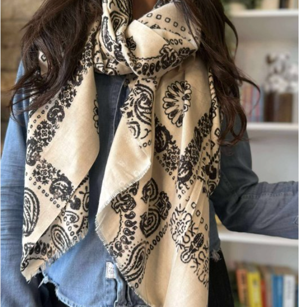 Highlight scarf textures, folds, and styling details with cinematic transitions and zoom-ins.
