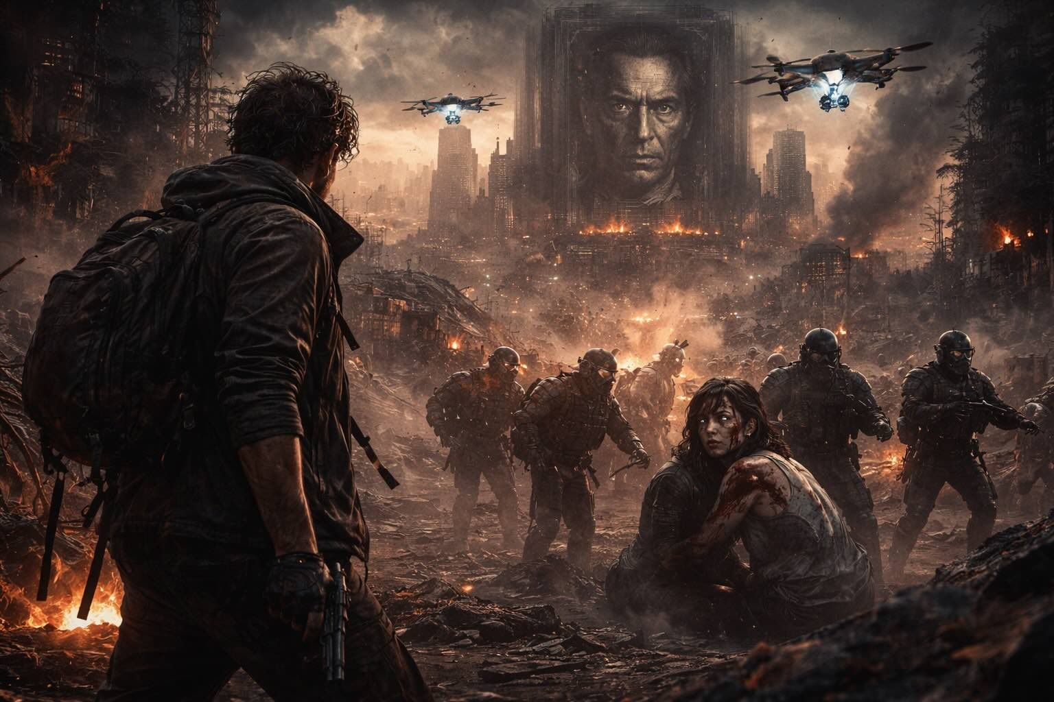 A cinematic dystopian video with complex storytelling, visuals, and emotional depth.