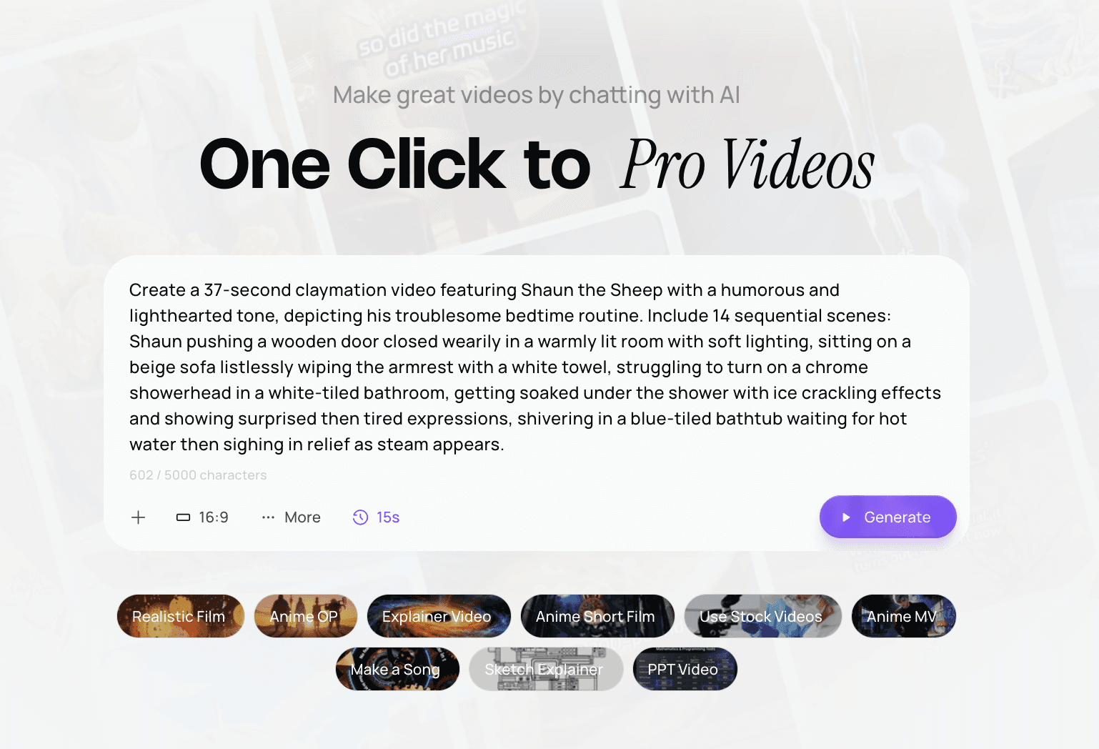 Generate short character videos optimized for TikTok, Instagram, and YouTube.