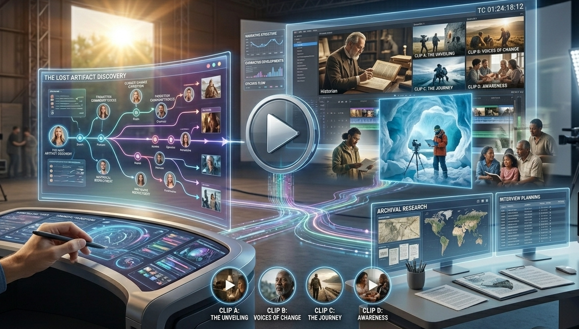 AI structures your content into a compelling documentary narrative.