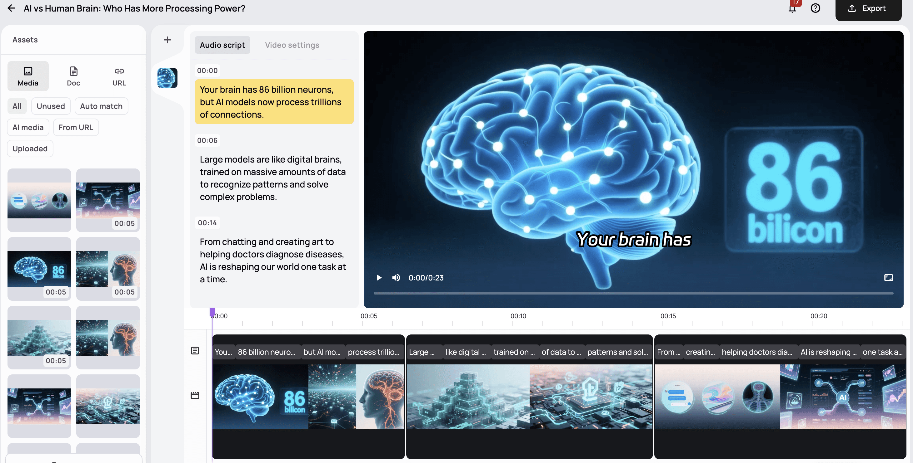 AI analyzes the content, identifies key points, and builds a clear explainer video outline.