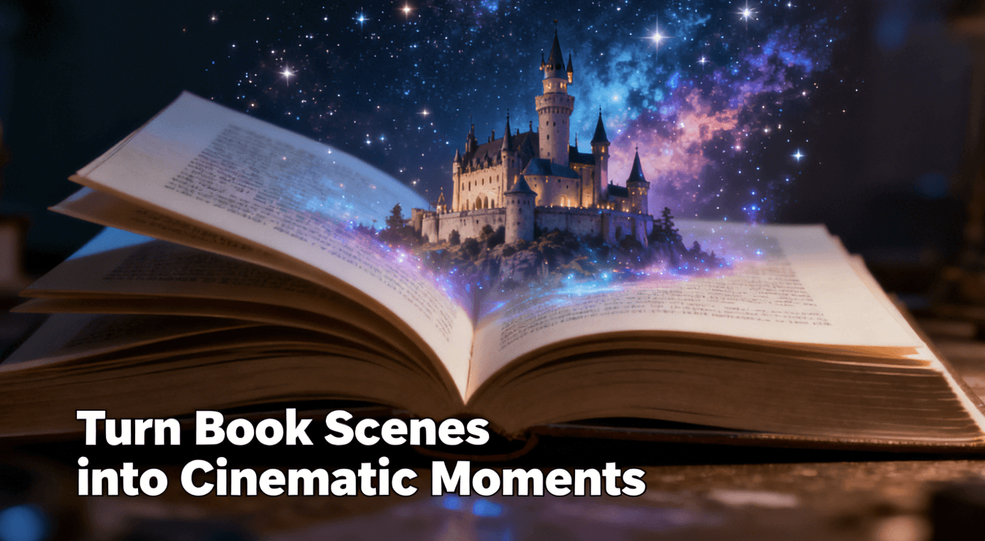 Transform any book passage or novel excerpt into a cinematic video scene with AI. Create realistic environments, characters, and dramatic visuals directly from text—perfect for authors, readers, and content creators.