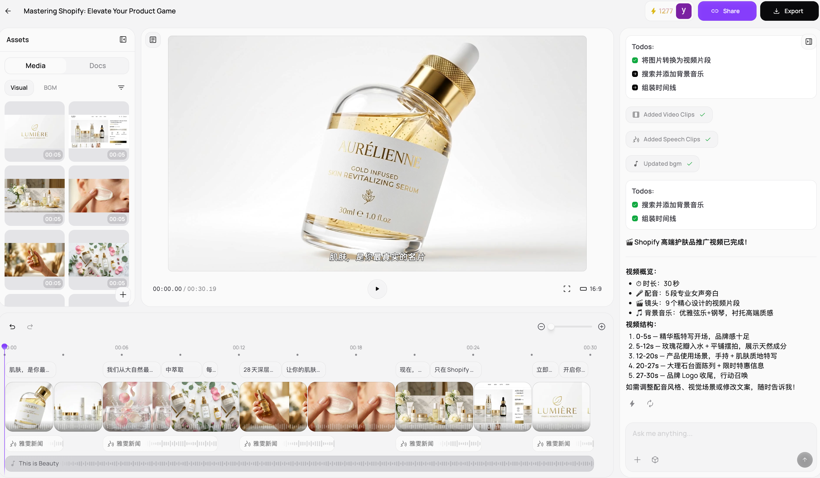 AI automatically creates scenes, captions, and animations for the product.