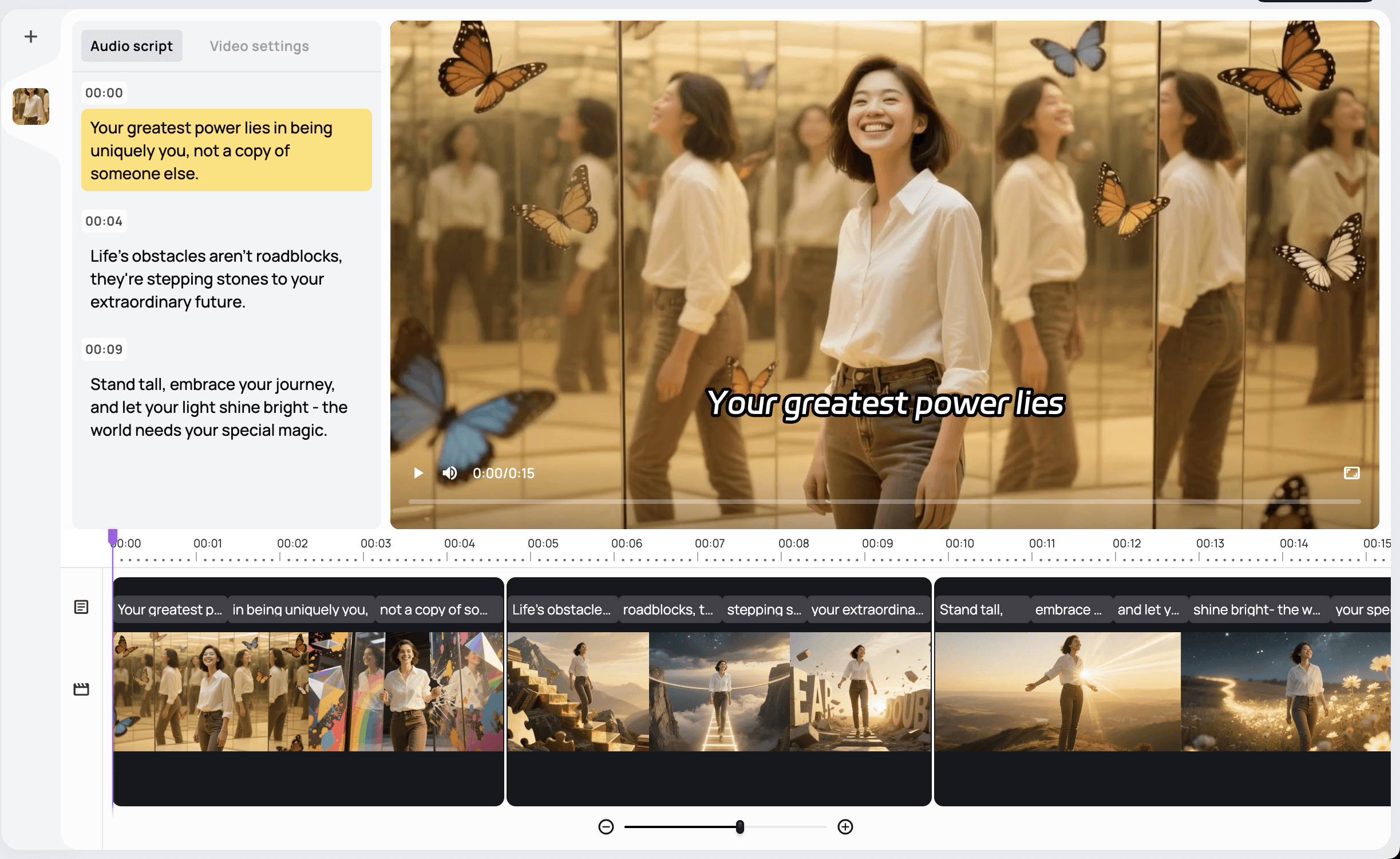 Turn simple quotes into visually stunning short motivational clips for social media.