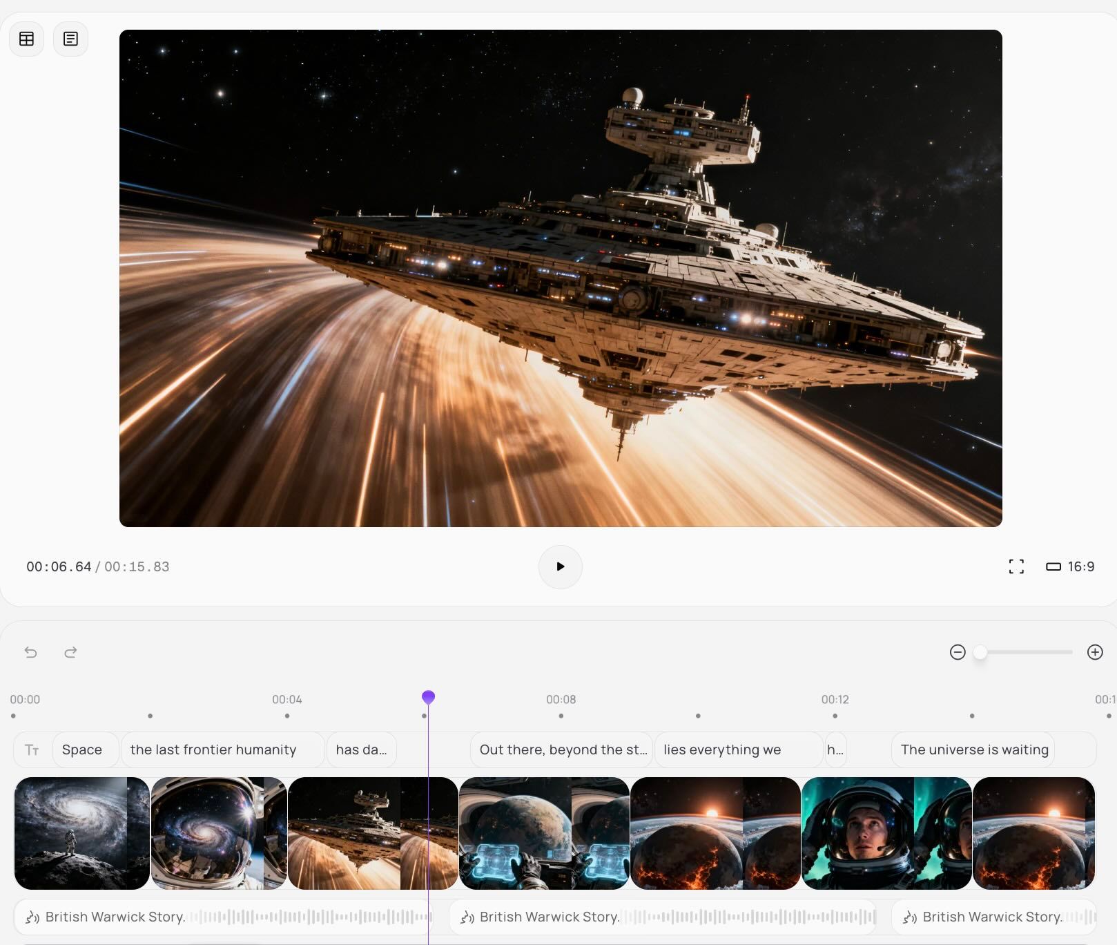 Create cinematic space videos with AI-powered automation.
