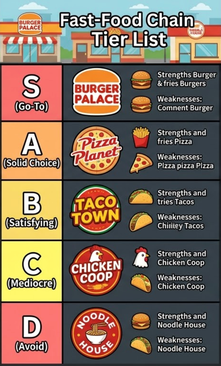 Present rankings clearly with structured tiers like S, A, B, C, and D.
