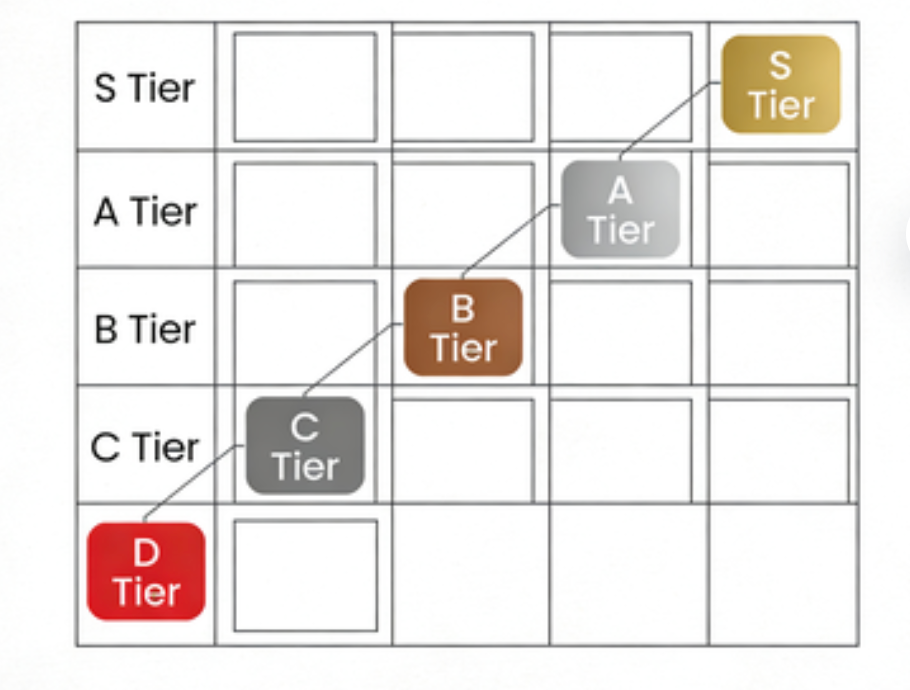 Automatically organize items into S, A, B, C, and D tiers with clear visuals.