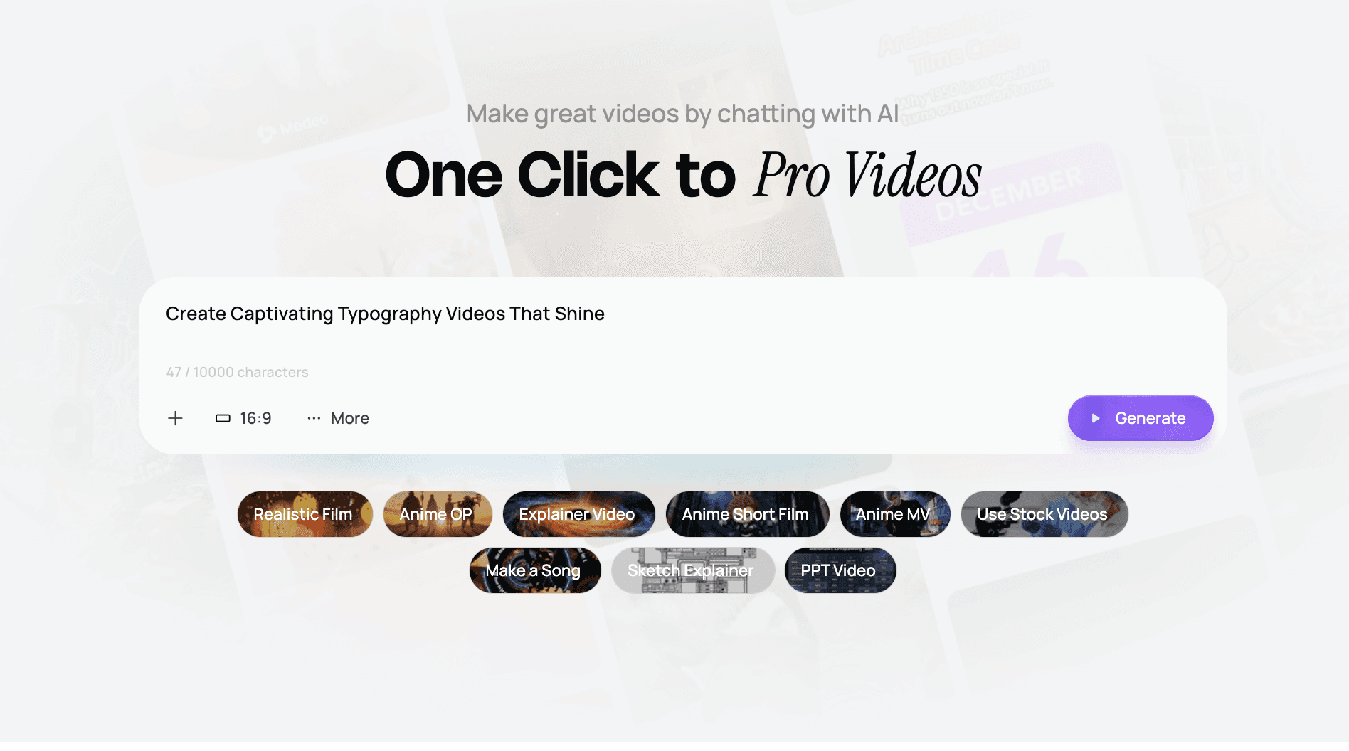 Medeo’s AI analyzes your text and automatically applies motion, font styles, and transitions.