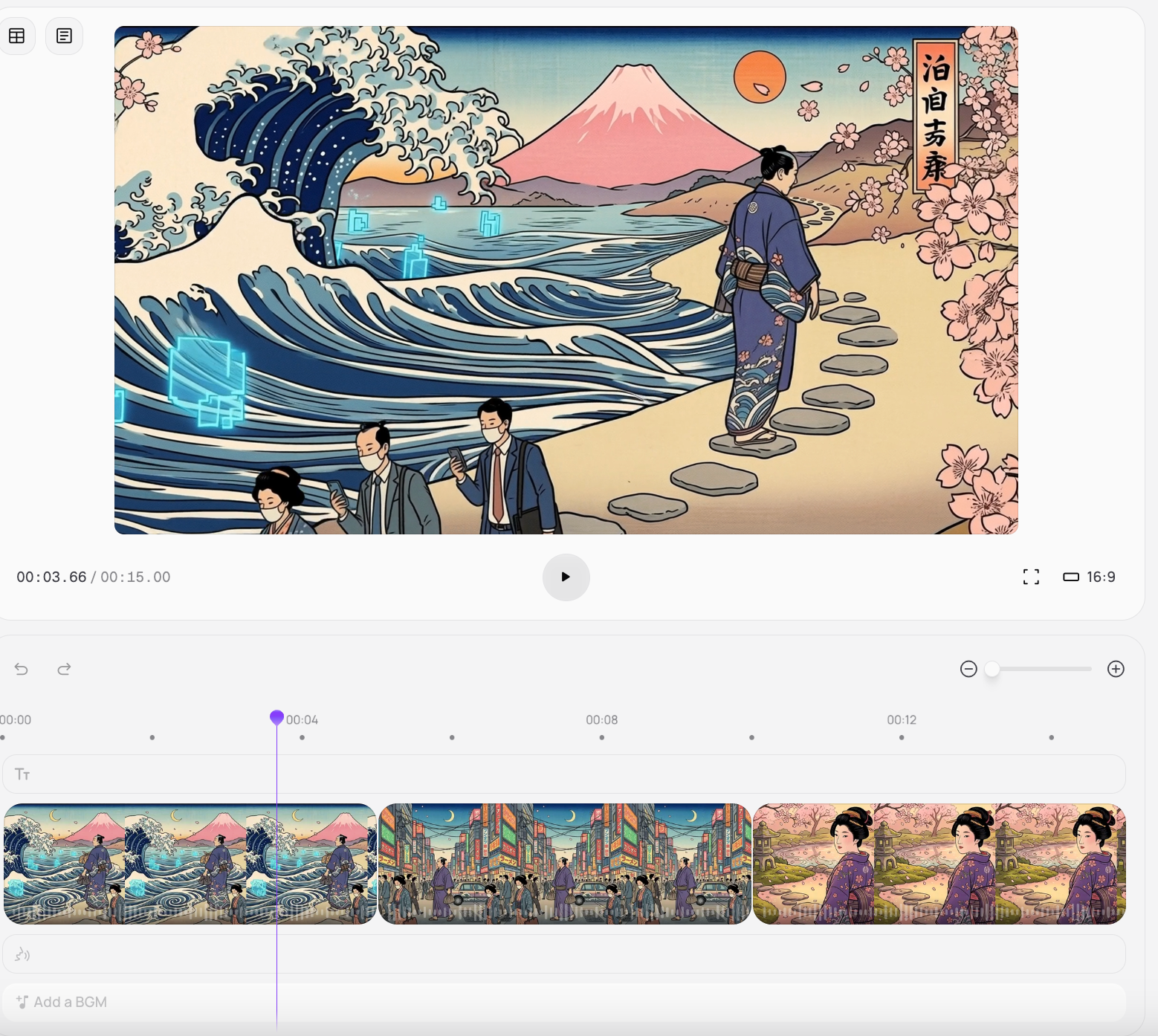 Produce eye-catching Ukiyo-e style videos for TikTok, Instagram, and YouTube Shorts.