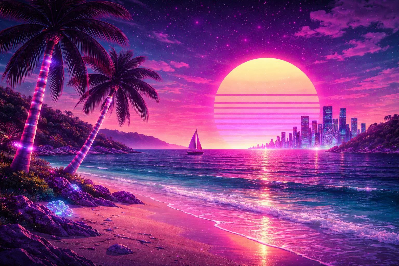 Generate high-resolution vaporwave videos ready for social media, music, or large displays.