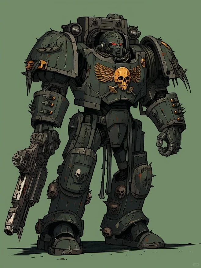 Apply the iconic Warhammer 40k aesthetic with moody lighting and heavy shadows.